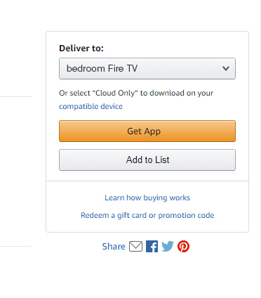 - Select the Amazon Fire device you want the Hauppauge myTV app delivered to and click Get App