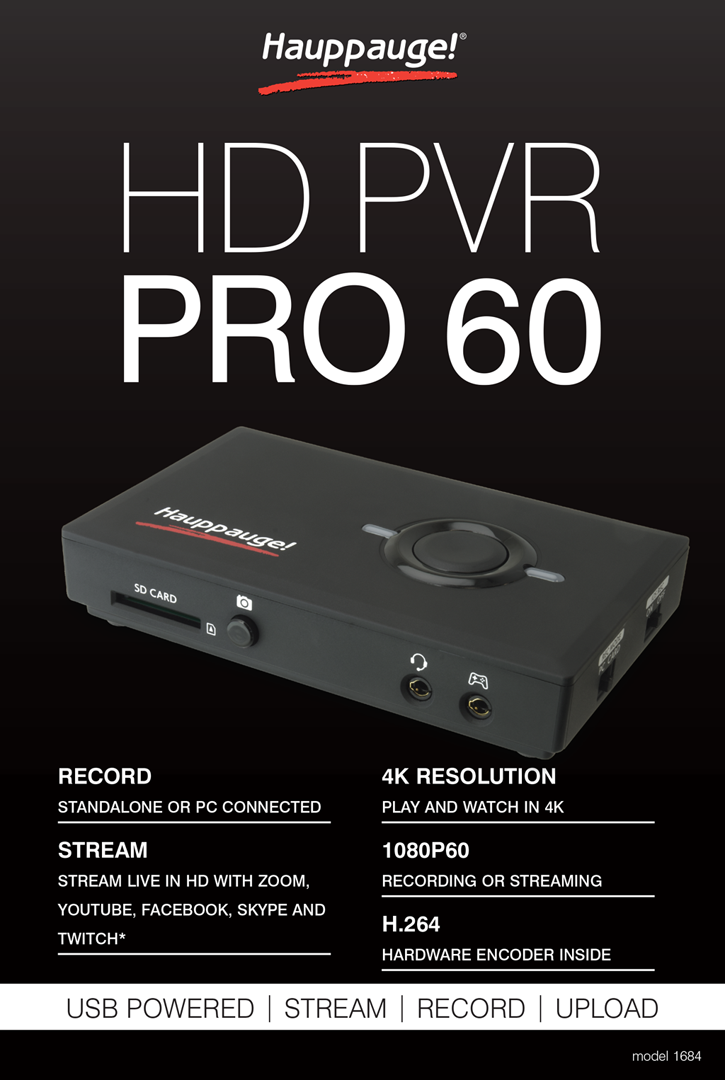 The HD PVR Pro 60's built-in H.264 1080p60 video encoder to create incredible quality video recordings from your 4K games. With the HD PVR Pro 60's video encoder, your PC runs at full speed while recording your game play.