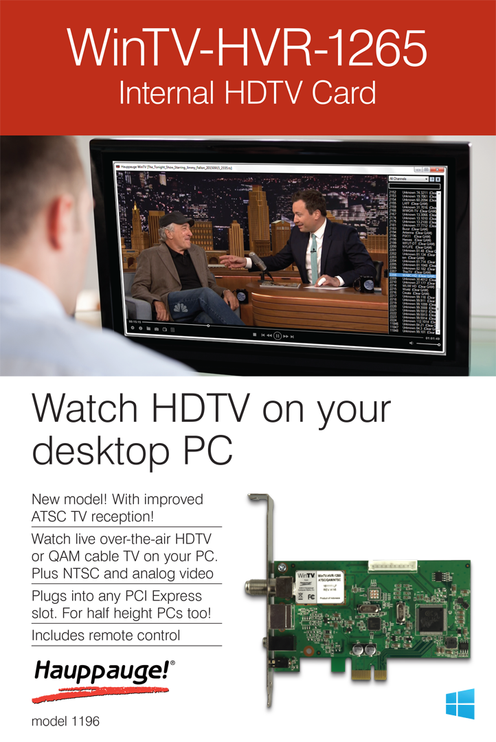 model 01196: WinTV-HVR-1265 with NTSC/ATSC/QAM support, Hauppauge remote control and English manual