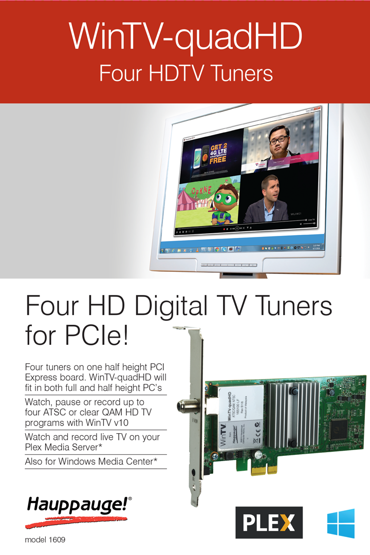 - Four tuners on one half height PCI Express board. WinTV-quadHD will fit in both full and half height PC's