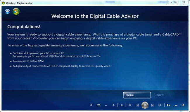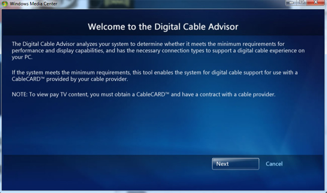 Running the Digital Cable Advisor to verify that your Windows 7 PC has a supported configuration: