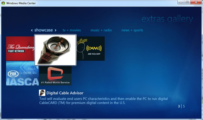 To check to see if your system is compatible to work with a CableCARD, in Windows Media Center go to Extras and click on Extras Gallery and click on the cable connector icon. If you do not see the cable advisor, click here.