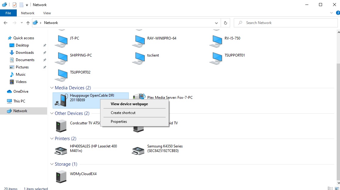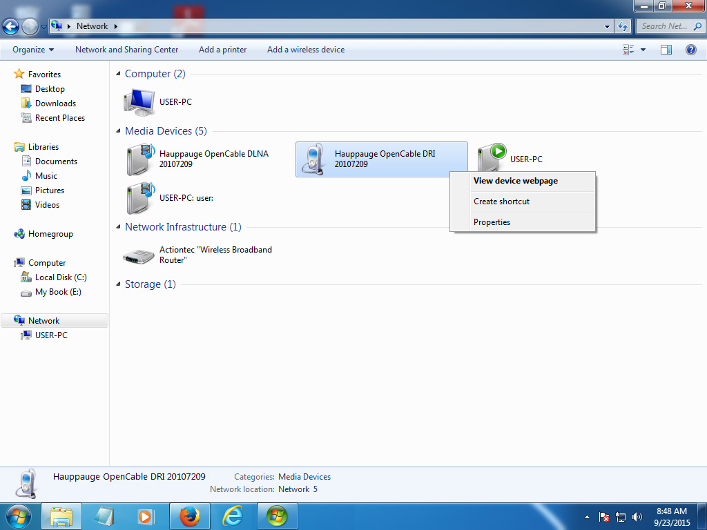 Under Media Devices look for Hauppauge OpenCable, right click it, and select View device webpage.