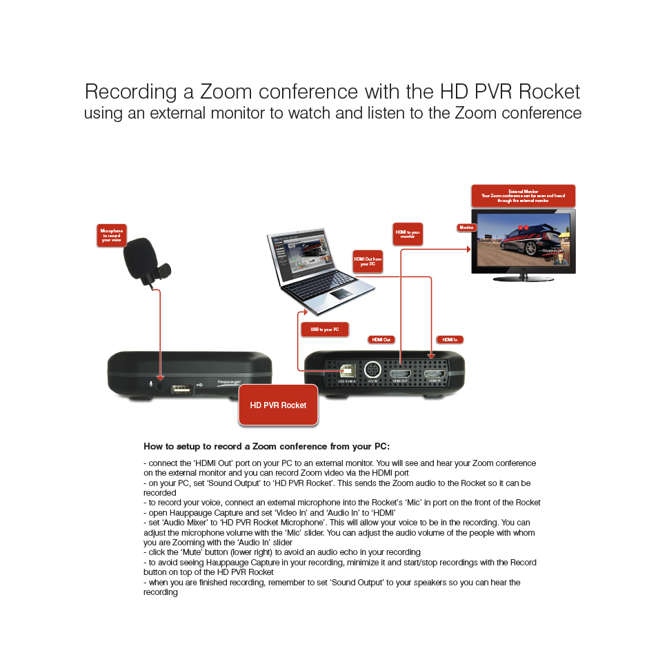John reported "I have a Zoom metting tomorrow that I need to record and I'm testing it today. I am able to record the video, but there's no audio recording. Is there something I am not doing correctly? I have HDMI out from laptop to the Rocket stand alone recording to a USB drive."