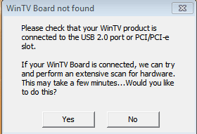 First time installation of WinTV v7 or during a reinstallation: “WinTV board not found” or “No TV tuner available”