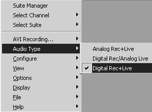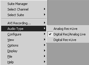 To switch between digital and analog audio, on the WinTV2000 application click "Menu", then "Audio Type" and then select: